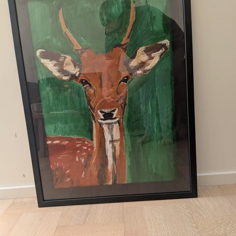 Äkta ram i skinn och trä. Sydd mattmaterial i