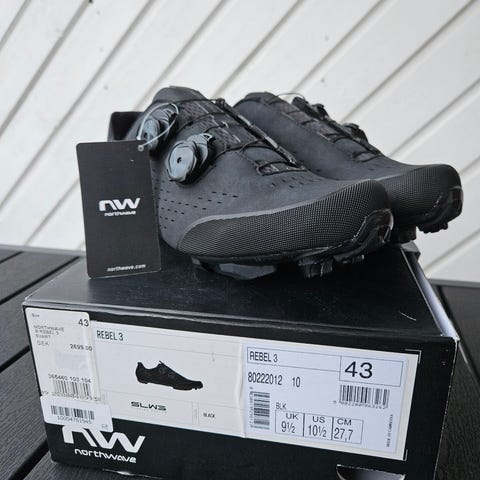 Giro Rincon W cykelskor i storlek 41 för dam. Skorna är svarta med ovandel i ventilerande syntetmaterial/mesh och förstärkt tåparti. Sulan har 2-bultsinfästning för SPD-typ klossar och grovt mönster för grepp vid gång. Stängning med BOA-vred och kardborreband för justerbar passform. Levereras med lösa innersulor enligt bilderna.