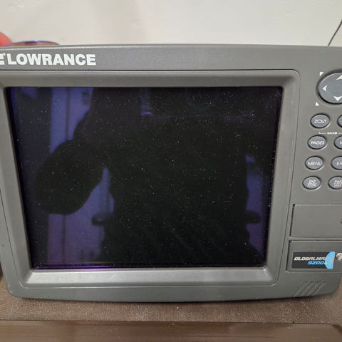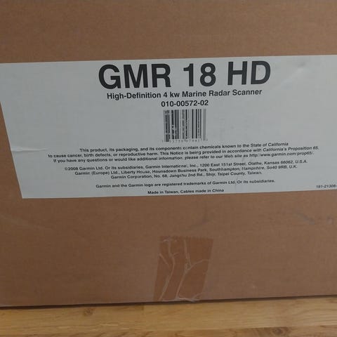Till TV:n hör en Glomex TV-antenn i vit färg med fäste och kabel, avsedd för montering exempelvis på båt eller husbil för mottagning av TV-signal.