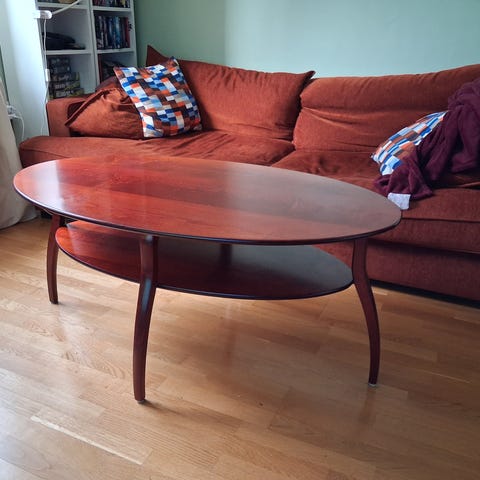Ovalt soffbord med hylla