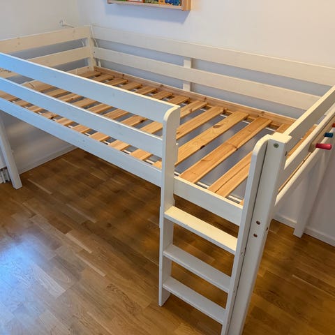 Inte använt med stege (stegen finns att få med) sonen hade en pall då vi haft väldigt trångt om utrymme.