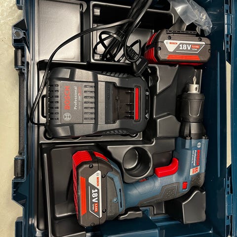 Levereras utan batteri och laddare i en L-BOXX. Bra för den som redan har en del verktyg från Bosch, annars kan den enkelt kompletteras med passande paket med batteri och laddare.