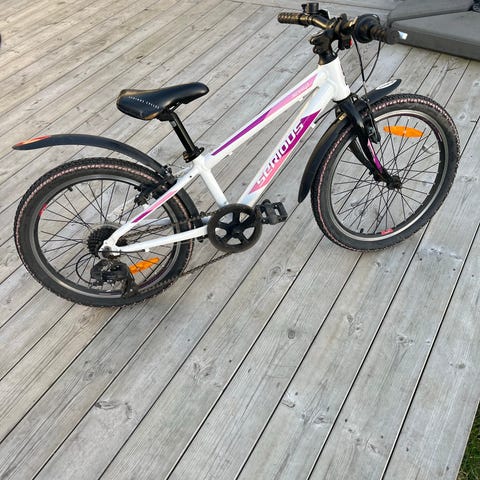 Cannondale Kids Quick barncykel med 20" hjul i lila färg. Cykeln har lätt ram, raka styre och handbromsar fram och bak. Utrustad med växlar, kedjeskydd och reflexer. Passar barn som vuxit ur mindre barncyklar och behöver en cykel med 20-tums hjul för vardagscykling och fritidsbruk.