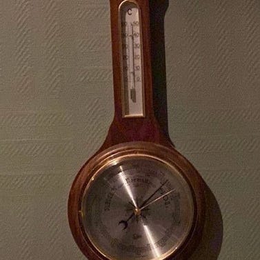 Funktion: Den mäter lufttrycket genom att vattennivån i pipen stiger eller sjunker.