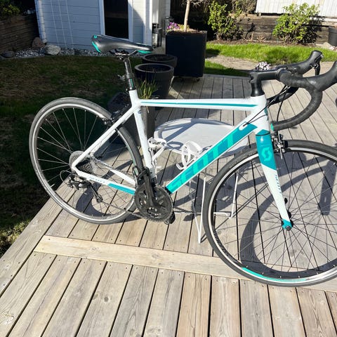 Cykeln har några kosmetiska repor och en liten skada på styret, annars i fint skick