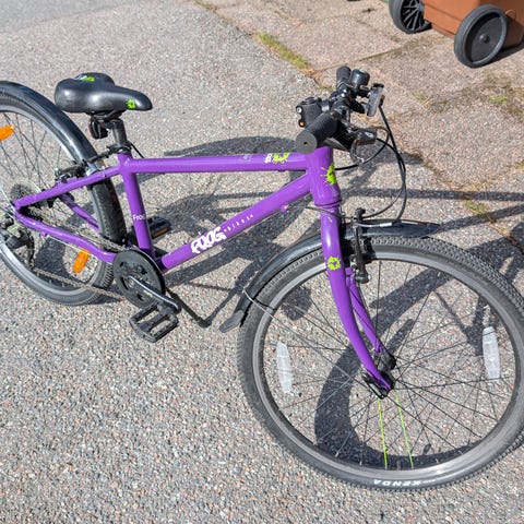 - Bromsar: Tektro V-bromsar med korta bromshandtag. Det krävs väldigt lite handkraft för barnet att bromsa säkert.