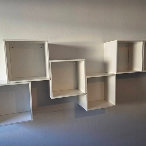 Fina hyllor i färgen grå från HM Home. Passar perfekt till böcker, gosedjur och tavlor i barnrum.