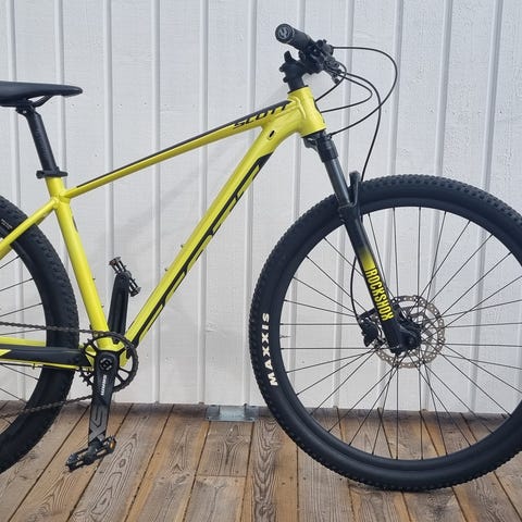 Cykeln har hardtail-ram, framgaffel med dämpning och hydrauliska skivbromsar fram och bak.
