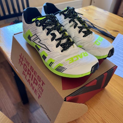 Diadora X Trivex Plus W cykelskor i storlek 38. Modellen är avsedd för dam och har ovandel i syntetmaterial i vit färg med detaljer i grönt. Skorna har kardborre- och spännesstängning för justerbar passform. Sulan är utrustad med fästen för SPD-liknande klossar för användning med clipless-pedaler. Använda ca 20 gånget