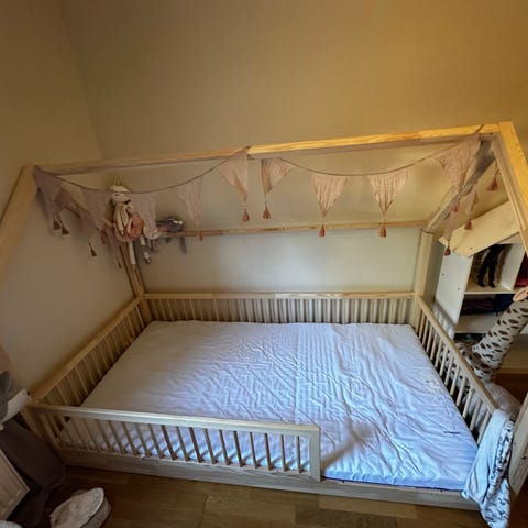 Säljer jättefin barnsäng tillsammans med madrass som jag enskilt köpt + sängskydd kant. Nypris 3000 kr.