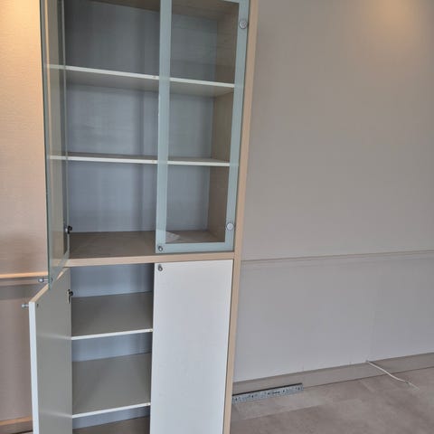 Stort och tungt skåp, skjutdörrar, kodlås, krokar på sidorna, ställbara fötter