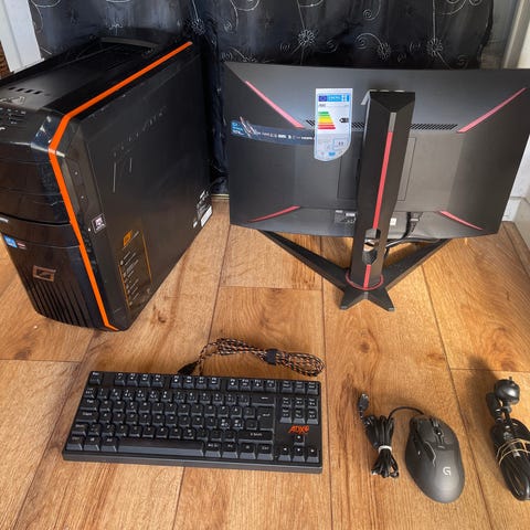 Hel uppsättning med kvitto och hela 3 års inskickningsgaranti från Komplett på datorn , 1 år ca på skärmen .