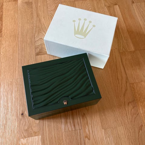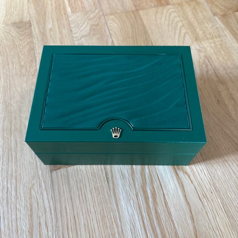 Original Rolex Cellini box i svart onyx lack. -90 tal. Mått 180 x 130 x 70 mm. I ett mycket fint skick. Det finns endast en liten defekt (se bild 6). Påverkar inte funktionen och syns knappt.