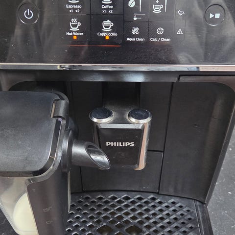 Philips espressomaskin EP2220 i svart utförande. Maskinen har inbyggd kaffekvarn och ångmunstycke för skumning av mjölk. Vattentanken är placerad på sidan och är avtagbar för enkel påfyllning och rengöring. Frontpanelen har tryckknappar för val av dryck och funktioner. Passar för bryggning av kaffe, espresso och cappuccino andra kaffedrycker,hett vatten, skumma mjölk hemma.Följer med avfettnings tabletter, avkalknings medel,Nytt vatten filter. Bägare för mjölkskummning.bruksanvisning finns, Finns i Ludvika skickas ej .Tar swish