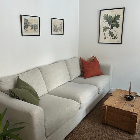 En beige bäddsoffa i mycket bra skick. Som säng är den 130 cm.