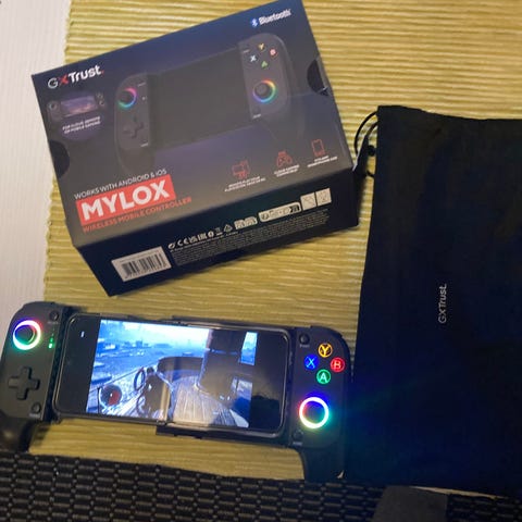 GXT 735 Mylox är en trådlös mobil handkontroll som ger dig konsolkänsla direkt i mobilen. Den låter dig spela controller-vänliga iOS- och Android-spel med riktiga knappar, och du kan även streama dina PlayStation- och Xbox-titlar till mobilen via wifi. Det stadiga, gummerade greppet, vibrationsfeedbacken och upp till 12 timmars batteritid lyfter varje spelstund – hemma, på språng eller när du vill lämna tv:n en stund.