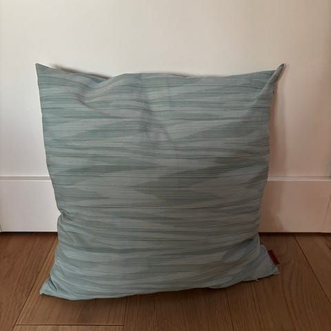 Missoni matta, sittpuff och kudde i flerfärgat mönster