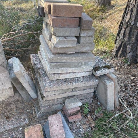 Kantstenar i röd betong.Mått. längd50cm höjd 25cm och tjocklek 5.5cm.några över 70 stycken
