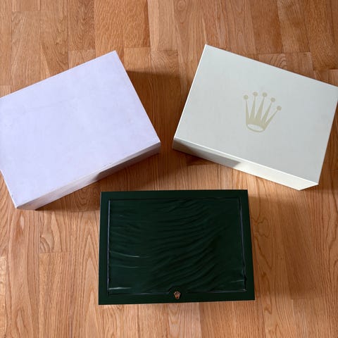 Original Rolex box Large. Komplett med kartong och putsduk. Mått: 210 x 160 x 95 mm. I ett mycket bra skick.