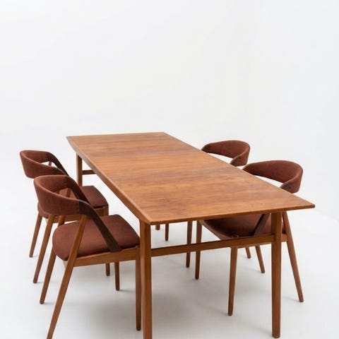 Formgiven 1958 av Børge Mogensen och producerad av Carl Hansen & Søn. Bänken är utförd i massiv ek med handflatad sits i rotting och speglar Mogensens fokus på funktionella och hällbara vardagsmöbler. Den är utformad för att kunna användas både som sittmöbel och som bord, vilket är karakteristiskt för hans rationella och användarcentrerade designfilosofi.