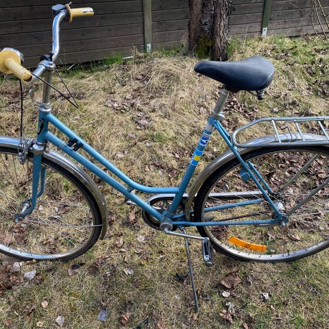 Crescent damcykel för kvinna med 28" hjul och ramstorlek M. Cykeln har klassisk lågt insteg, pakethållare bak, stänkskärmar och upprätt sittställning. Utrustad med handbroms fram och navbroms eller fotbroms bak (enligt bild), samt reflexer fram, bak och på hjulen. Färg: blå. Lämplig som vardagscykel för pendling och ärenden i stadsmiljö eller på cykelvägar.
