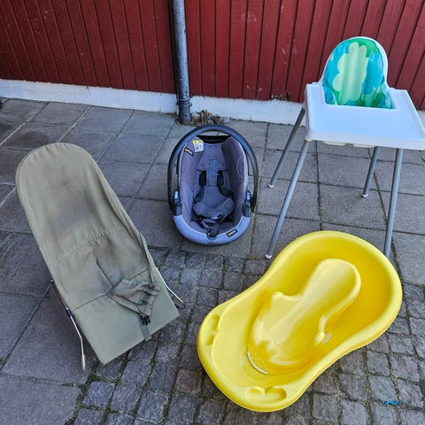Gåstol, babysitter, babyskydd, skötbord, babygym