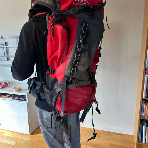Ryggsäcken är i väldigt fint skick och har bara använts ett fåtal gånger. Bekväm att bära med justerbart bärsystem, vadderade axelremmar och höftbälte.