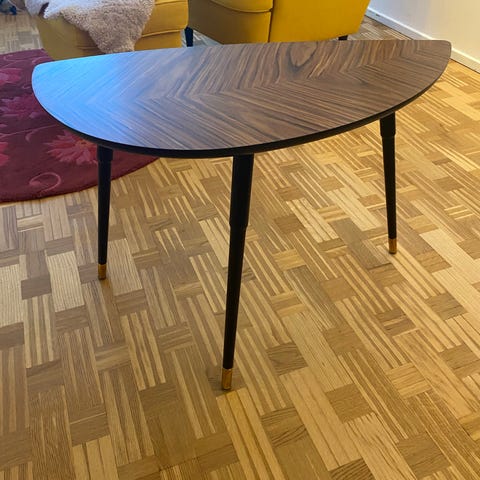 Säljer tre stilrena satsbord med vacker träfinish och svarta ben med mässingsdetaljer.