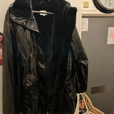 80/ tals rymlig skinnjacka svart .42 se mått , axelstoppning