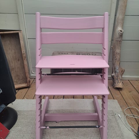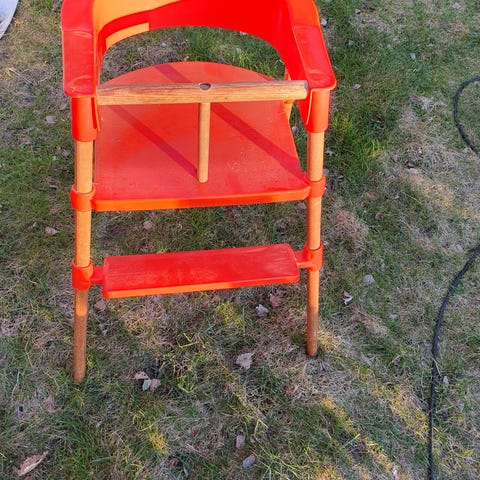 Stokke Tripp Trapp matstol i orange målat trä. Klassisk barnstol med justerbar sittplatta och fotplatta som kan anpassas efter barnets längd. Stolen är utformad för att barnet ska kunna sitta vid matbordet i rätt höjd. Passar från småbarnsålder och uppåt beroende på montering och tillbehör. Säljes utan angivna extra tillbehör om inget annat framgår i annonsen. Säljer styckvis. Har även en stycke babybåge för de minsta som medföljer om önskas. Pris per styck 800 kr båda för 1500 kr.