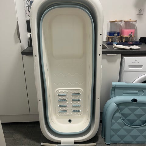 Hopfällbar tvättkorg plast grå/vit