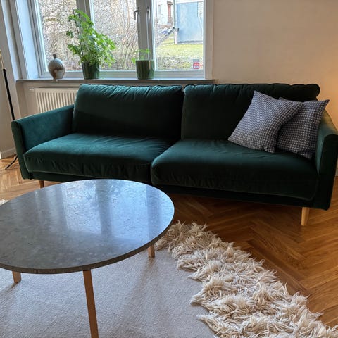 Övernattningslägenhet så knappt använd. Nu ska lägenheten säljas och likaså soffan.