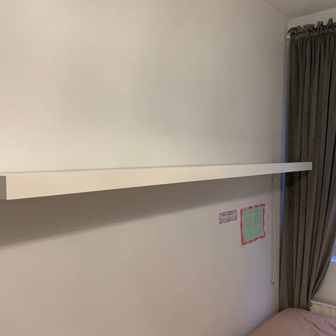 En vägghylla från Ikea, 149kr ny, 110x26cm, mörkbrun färg