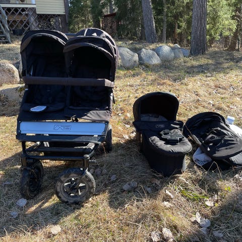 Smidig och stabil syskonvagn med två sittdelar som kan vändas individuellt. Klarar upp till 25 kg per barn och funkar därför länge.