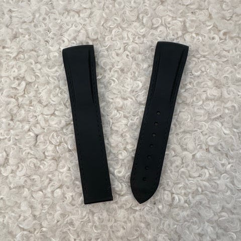 Svart Omega krokodilband i storlek 20-18 mm med Omega viklås 18 mm.