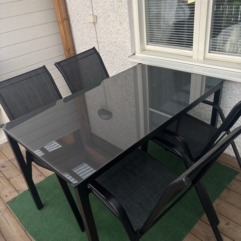 Matgrupp utomhus bord och 4 stolar svart glas topp