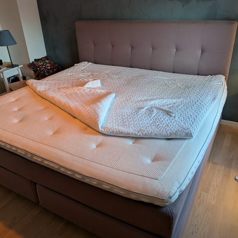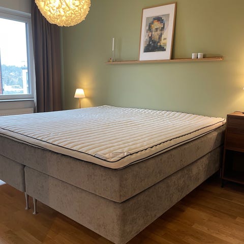 Säljer en fin kontinentalsäng från Kungsängen (Modell: Sofiero). Den är extra bred 210 x 200 cm. Den är välvårdad och kommer från ett djur- och rökfritt hem. Enda som inte följer med är ben ( vi har haft sängben som bara skruvas på) och bäddmadrass men kan såklart köpas nytt som passar nya ägaren. Det är en mycket fin säng och priset är prutat och klart!