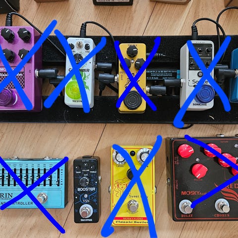 Säljer gitarrpedaler, pedalbord och tillbehör.