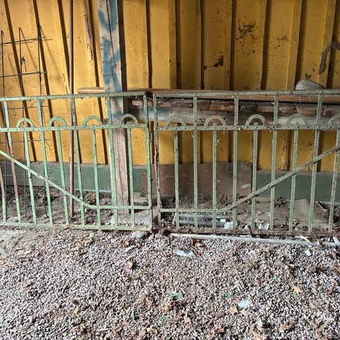 Grind i grönt metallnät med stolpar