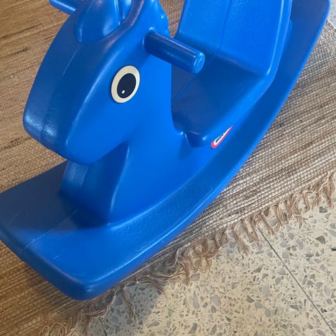 Röd gunghäst från Little Tikes. Använd med skrapmärken undertill - se bild - men den har mycket kvar att ge!