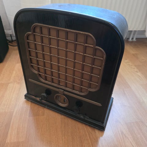 Radio Philips Modell 2634 från 1931/32 Mycket ovanlig finns inte många ex kvar i bakelit kabel klippt och ej funktionstestad skicka se bilder och fläckarna som syns på en av bilarna är solen .
