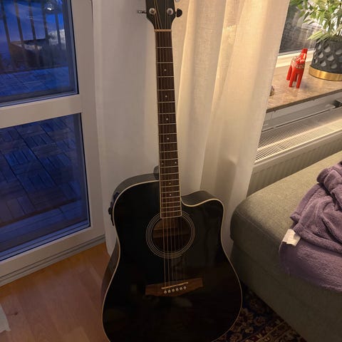 Akustisk gitarr i svart färg i fullstorlek 4/4.