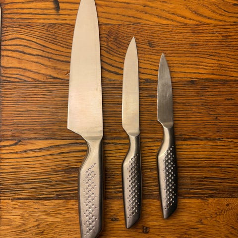 IKEA köksredskap set bestående av flera olika delar för matlagning och förberedelse i köket. Setet innehåller bland annat knivar i olika storlekar, rivjärn, vispar, sax och potatisskalare. Redskapen är främst i rostfritt stål med handtag i plast. Passar för vardaglig matlagning och förberedelse av olika råvaror i köket.