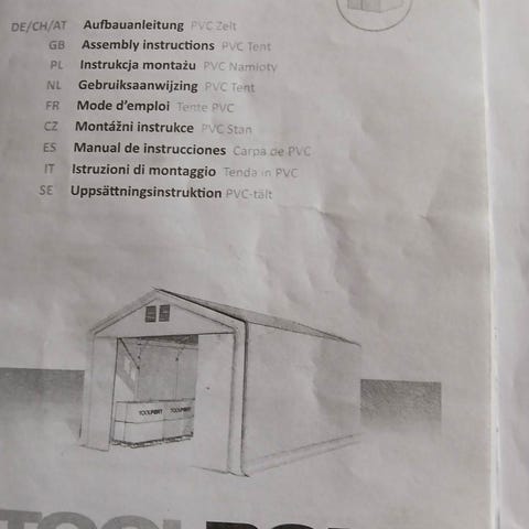Nordic Prostore Fornorth redskapsbod med sockel, tillverkad i stål. Boden har en golvyta på cirka 9 m² och levereras som byggsats i flera kartonger. Konstruktionen är avsedd som förvaringsutrymme för trädgårdsredskap, maskiner och annan utrustning. Skjutdörrar ger bred öppning för in- och utlastning, och väggarnas utformning ger ventilation i boden. Passar för placering i trädgård eller på tomt där extra förvaringsyta behövs. Som syns på bilderna blev den alldrig monterad förra året så kartongerna blivit bleka