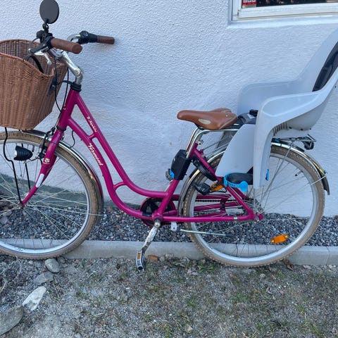 Säljer vår blåa cykel i märke Monark med tre växlar. Fint och bra skick. (Cykelbarnsits säljes ej).