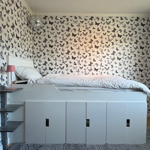 Säng med förvaringslådor och madrass