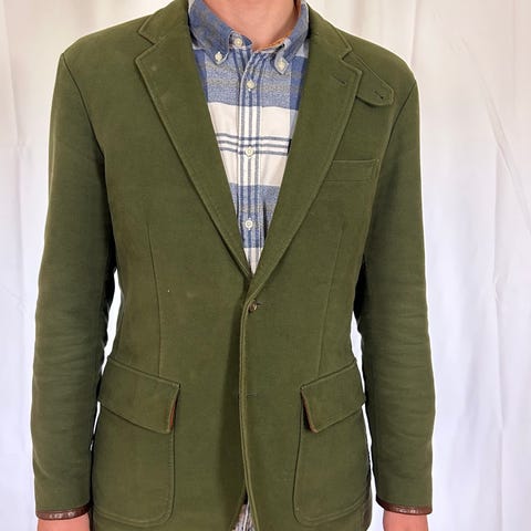 Ralph Lauren kavaj för herr i beige färg. Tillverkad i bomull och i storlek L. Klassisk modell med slag, tvåknäppning framtill, bröstficka samt framfickor. Sprund bak för bättre passform och rörelsefrihet. Passar till både vardag och mer formella sammanhang beroende på hur den kombineras med övriga plagg.