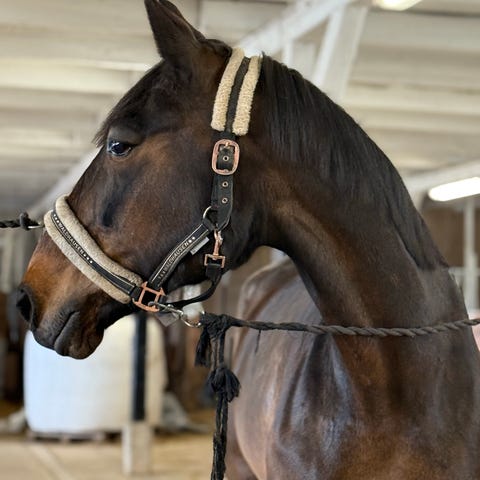 Hon är sadelvan, mycket tömkörd, tricktränad och stegrar på kommando.