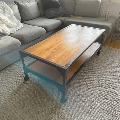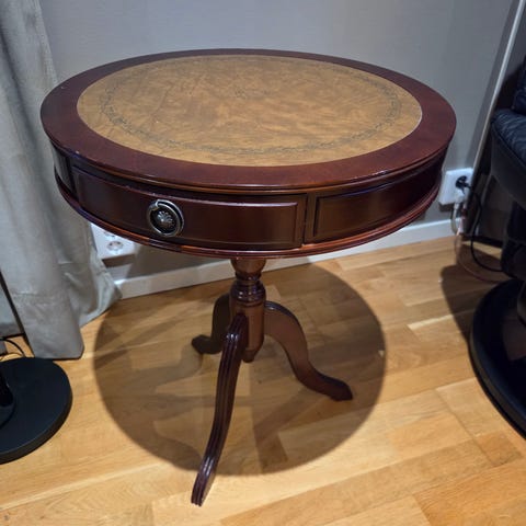6 kantigt bord med en öppningsbar låda längst ner och en på motsatt sida för dekoration.