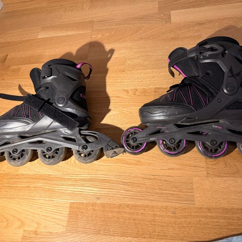 Inlines för rullskridskoåkning, storlek mellan 29-37. Lämpliga för träning, fritidsåkning och lek på asfalt eller andra släta underlag. Snörning och spännen ger justerbar passform runt fot och fotled. Hjulen är placerade i rad för stabil åkning framåt och bakåt.